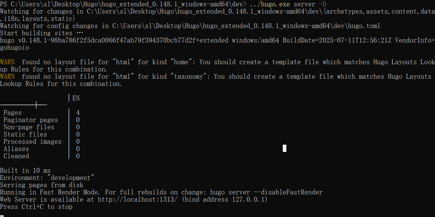 在Hugo目录下启动命令提示符/Powershell,执行以下命令