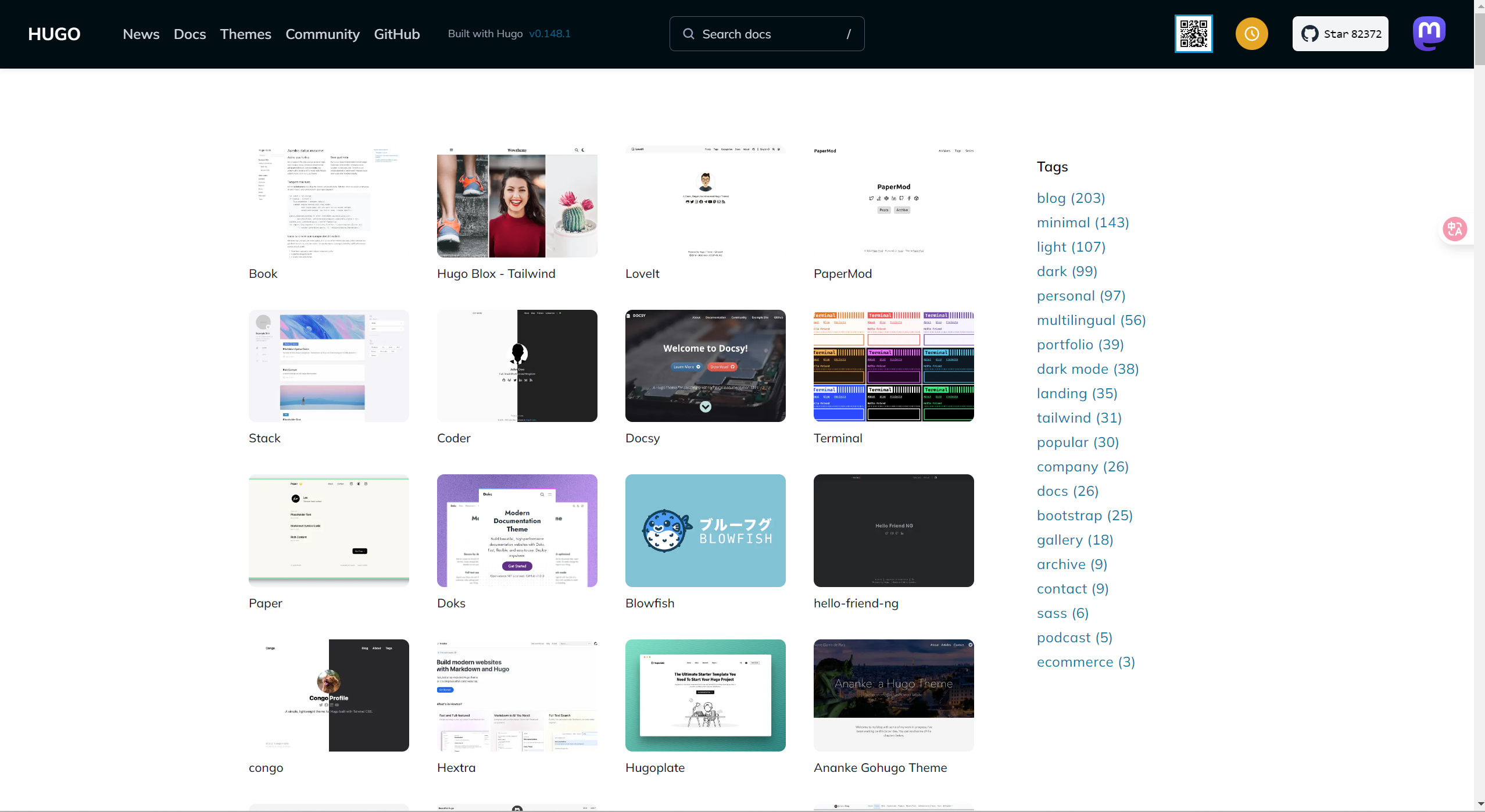 跳转到第二步的网页,或者在Hugo官网导航栏点击Themes。 点此跳转